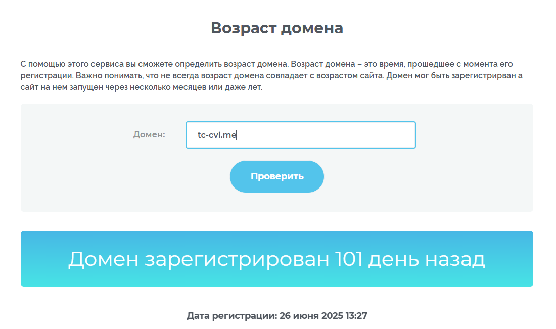 Анализ домена предложенной платформы показал, что появилась она совсем недавно: домен был зарегистрирован в июне 2025 года.