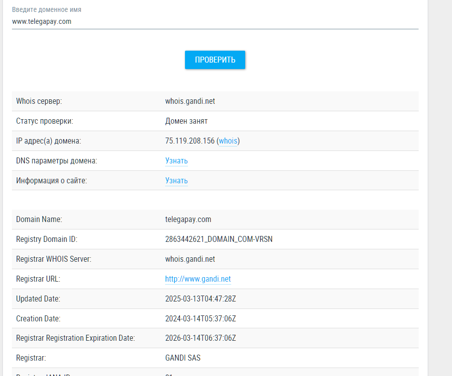 Домен сайта зарегистрирован в марте 2024 года. Регистратор неизвестен. Не указан адрес электронной почты, телефон для обратной связи и техподдержки пользователей.