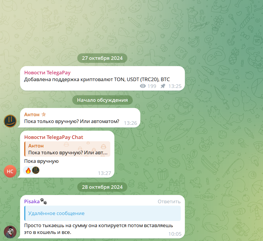 В ТГ канале «Новости TelegaPay» найдено всего три комментария пользователей, которые уточняют, как подтверждать транзакции. Отзывы датированы октябрем 2025 года.