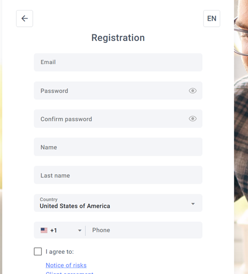 На сайте Tgi Global можно выбрать один из двух предложенных языков: английский или русский. Об условиях биржи, контактах и предоставляемых услугах можно узнать на сайте без создания учетной записи. Но чтобы воспользоваться услугами брокера, создается личный кабинет. Для этого запрашивают: