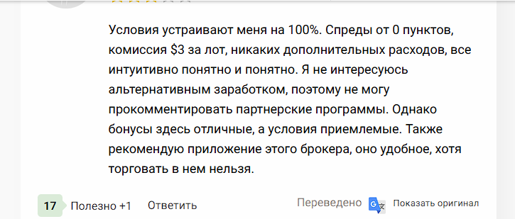 • Выгодные торговые условия – пользователям нравятся низкие спреды и комиссии, а также возможность использовать высокое кредитное плечо.