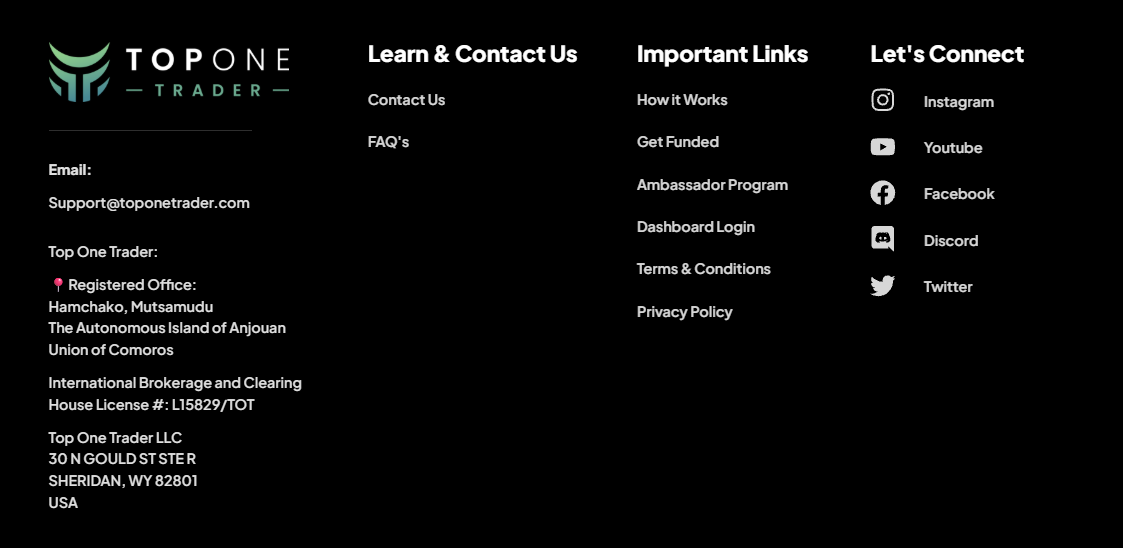 Основная проблема проекта в том, что как и другие проп-компании, фирма технически не считается брокером и не регулируется финансовыми комиссиями так же строго.Регулирование деятельности TopOneTrader com