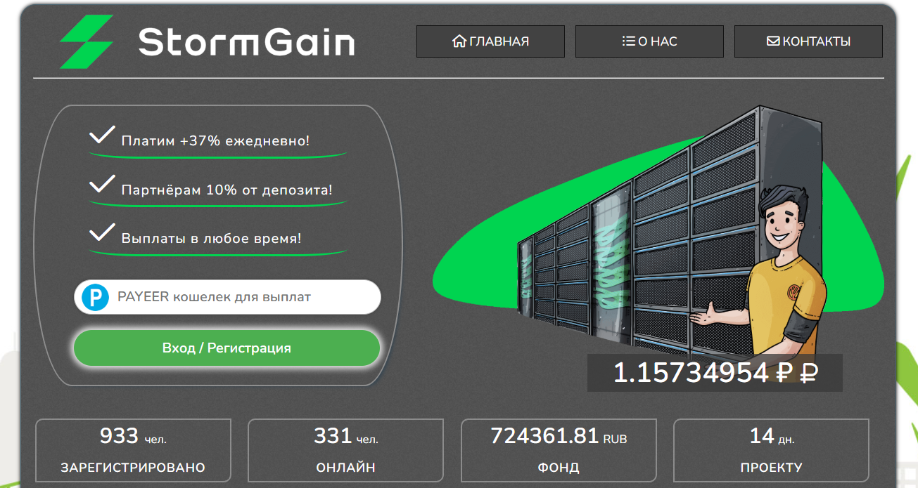 В отзывах о TopStormGain, нет данных о том, действительно ли клиент сможет воспользоваться отражаемым заработком – обещают прибыль до 37% в сутки, что вызывает негативное впечатление и с большей долей вероятности может оказаться обманом.