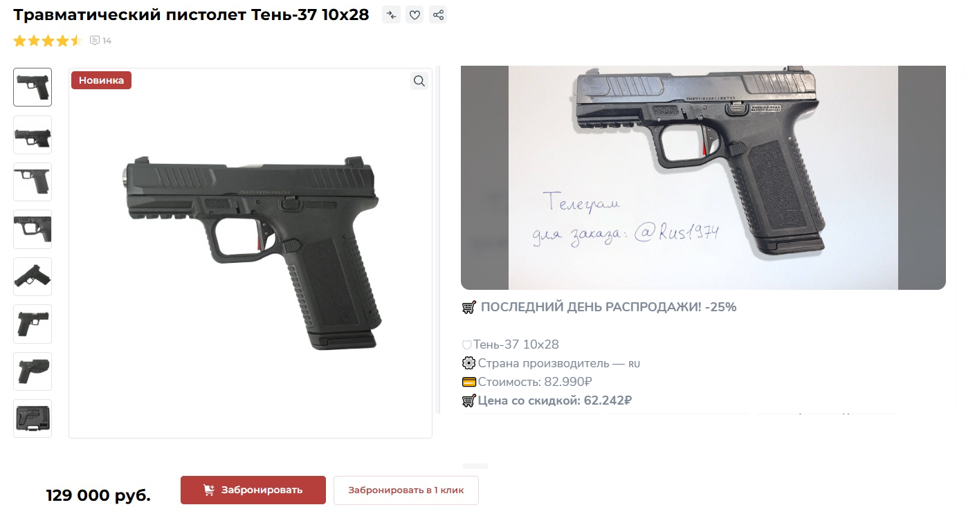 В публикациях на канале автор выкладывает различное фотографии травматического оружия, указывает название, страну производителя и цены, в том числе и со скидкой. Владелец утверждает, что работает более шести лет, предлагает доставку за пару дней и пишет про легальность на все 100%, причем в каждой публикации указана ссылка на лицензию, только ведет она в аккаунт Телеграм с ником Rus1974.