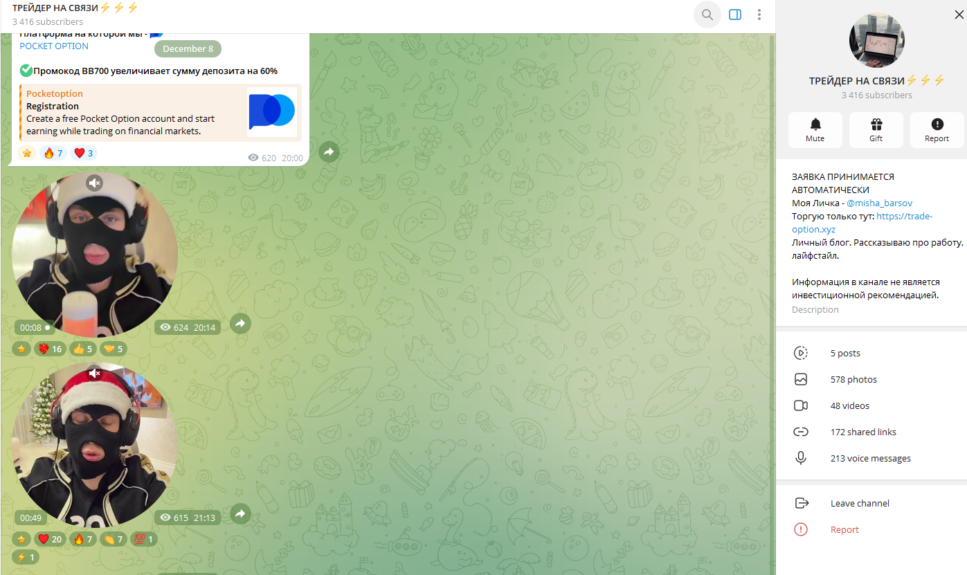 Суть его в том, что автор проекта будет бесплатно давать прибыльные сигналы для бинарных опционов. Любой человек якобы сможет их повторять на своем счету, чтобы стабильно зарабатывать. За свои услуги команда, которой управляет Misha Barsov, просит лишь зарегистрироваться по реферальной ссылке у брокера бинарных опционов. По состоянию на декабрь 2025 это Pocket Option – компания, которая обладает очень плохой репутацией. Однако люди, ослепленные желанием заработать, обычно не видят здесь ничего опасного. Поэтому многие соглашаются попробовать, а дальше сталкиваются с обычным обманом, который лучше всего раскроют отзывы пострадавших.