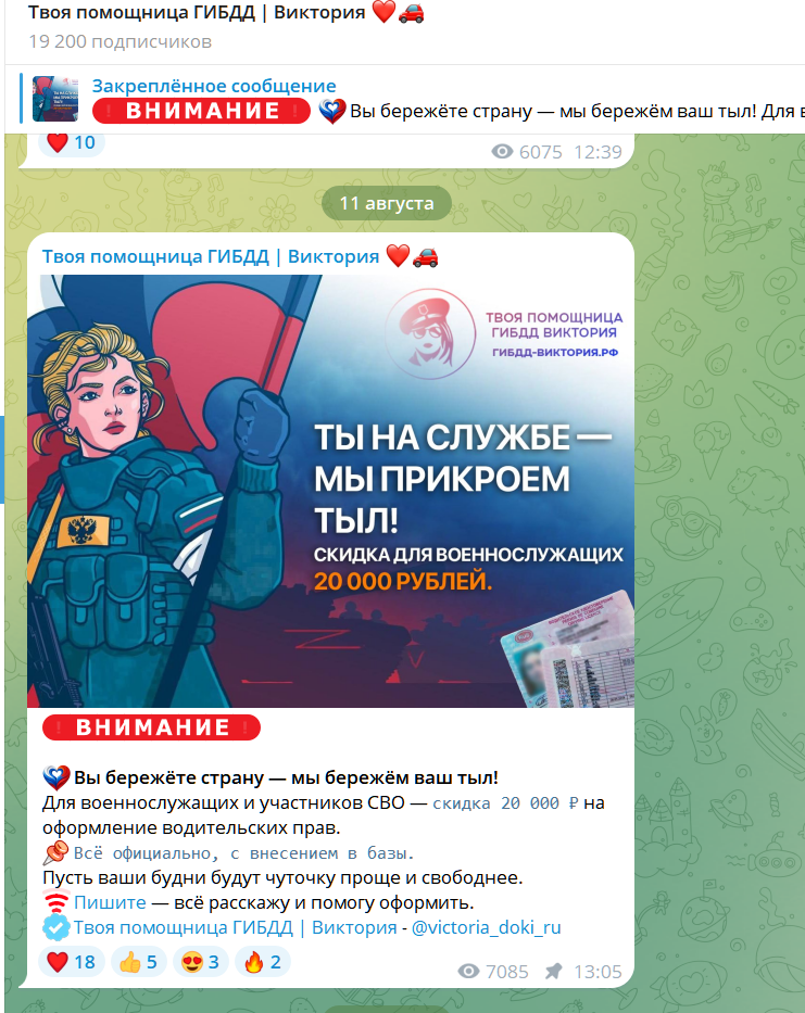 Мошенники с ТГ канала «Твоя помощница ГИБДД Виктория» в своей рекламе учитывают все проблемы потенциальных клиентов: