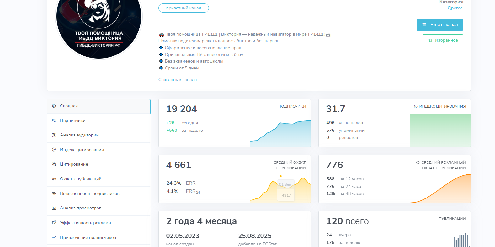Проверка накрутки трафика в ТГ канале «Твоя помощница ГИБДД Виктория»