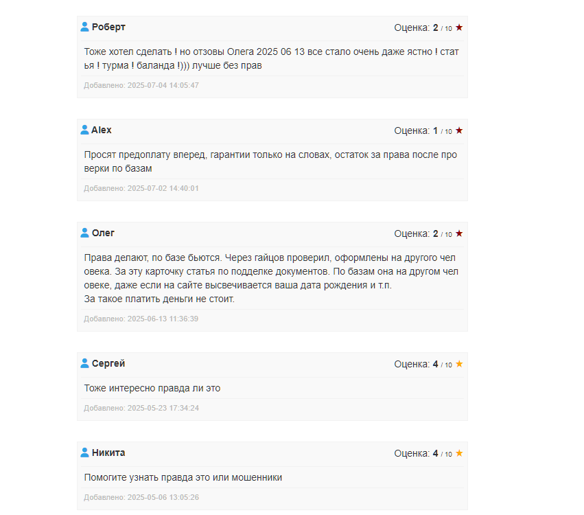 Реальные покупатели, которые получили подделку, сообщают, пробив прав через ГИБДД показал, что документ оформлен на другого человека.