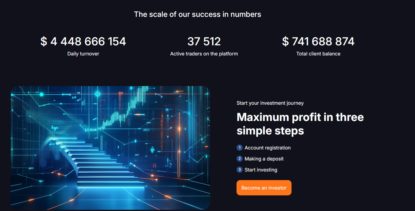 Сервис обеспечивает доступ к рынкам в режиме 24/7 с высокой ликвидностью, использует продвинутые алгоритмы анализа и реальное время для коммуникации. Регистрация аккаунта проходит в три этапа. Сначала участник создает учетную запись с указанием личных данных, затем вносит депозит и начинает инвестировать.