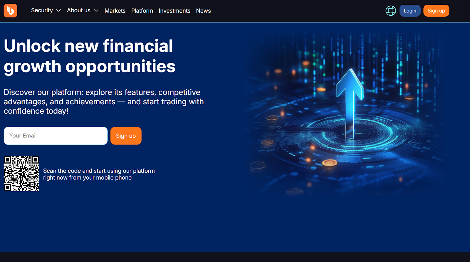 Имеется опция мобильной регистрации через QR-код. После пополнения счета участники получают возможность торговать с использованием кредитного плеча, но точные параметры плеча и спредов скрыты до момента регистрации. Фирма якобы является надежным партнером с многоуровневой системой защиты данных.