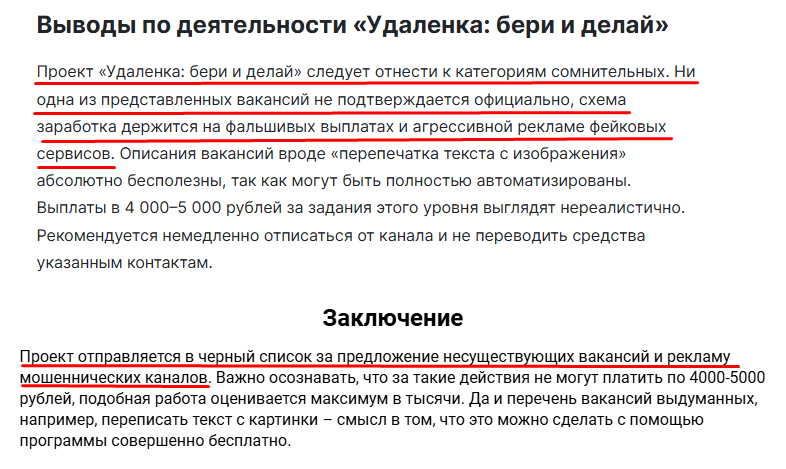 Тщательно проанализировав данный тг-канал по заработку на удалёнке мы делаем пару кратких выводов о нём: