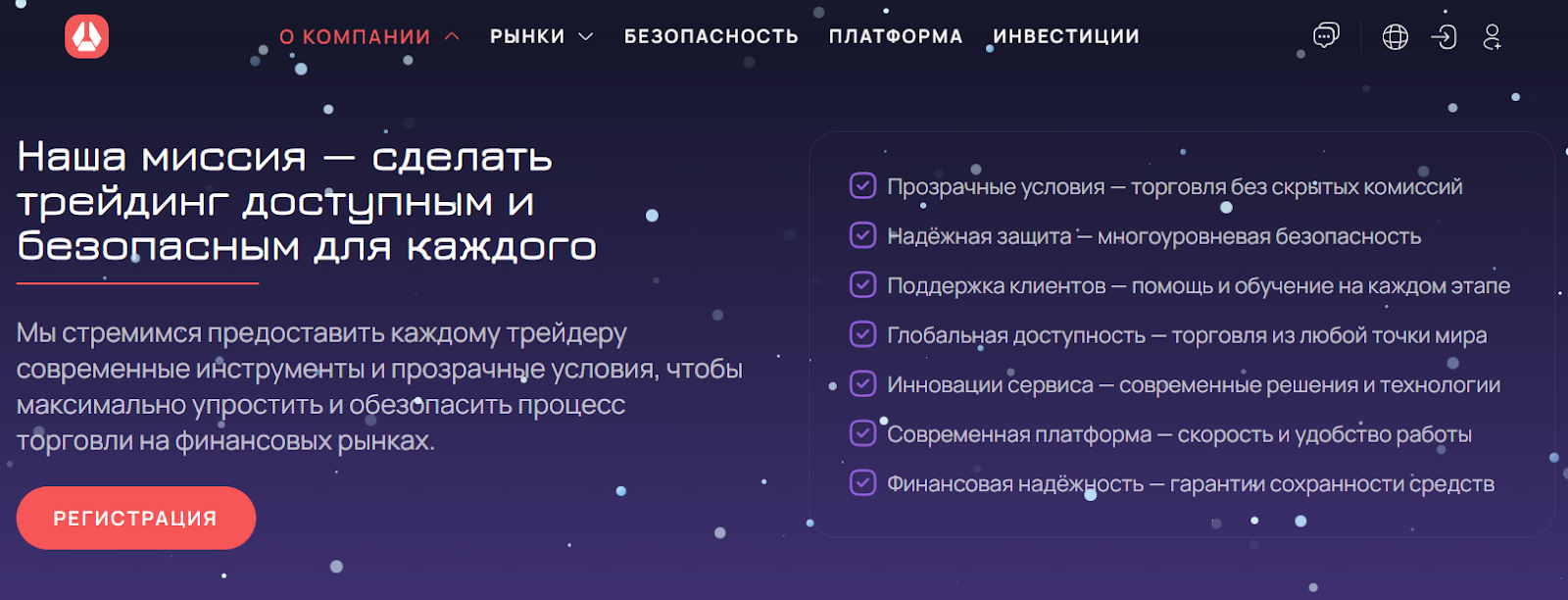 • В реестре ЦБ РФ брокера нет, значит клиенты из России подвержены рискам.