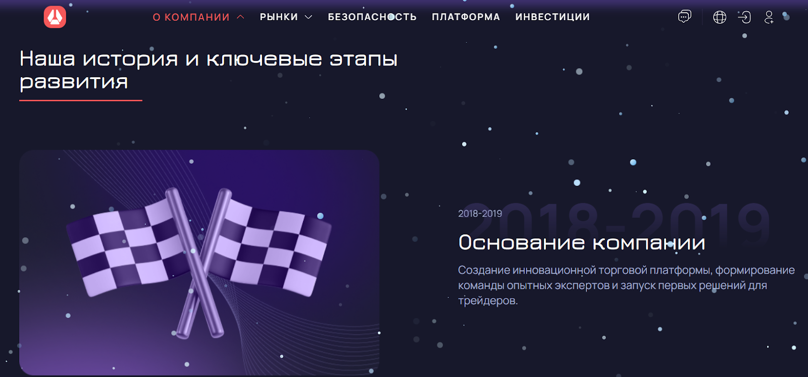 • 2018-2019 – сбор команды специалистов и запуск брокерского сервиса;