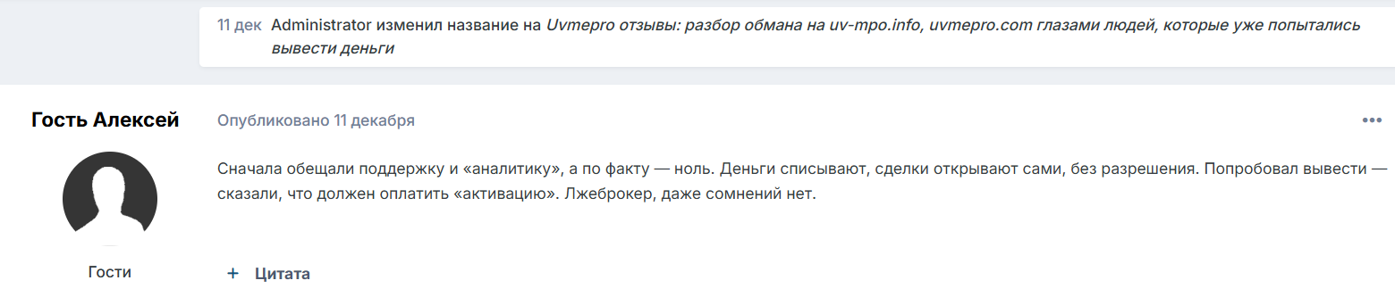 Отзывы о торговой платформе Uvmepro com от реальных клиентов в Сети