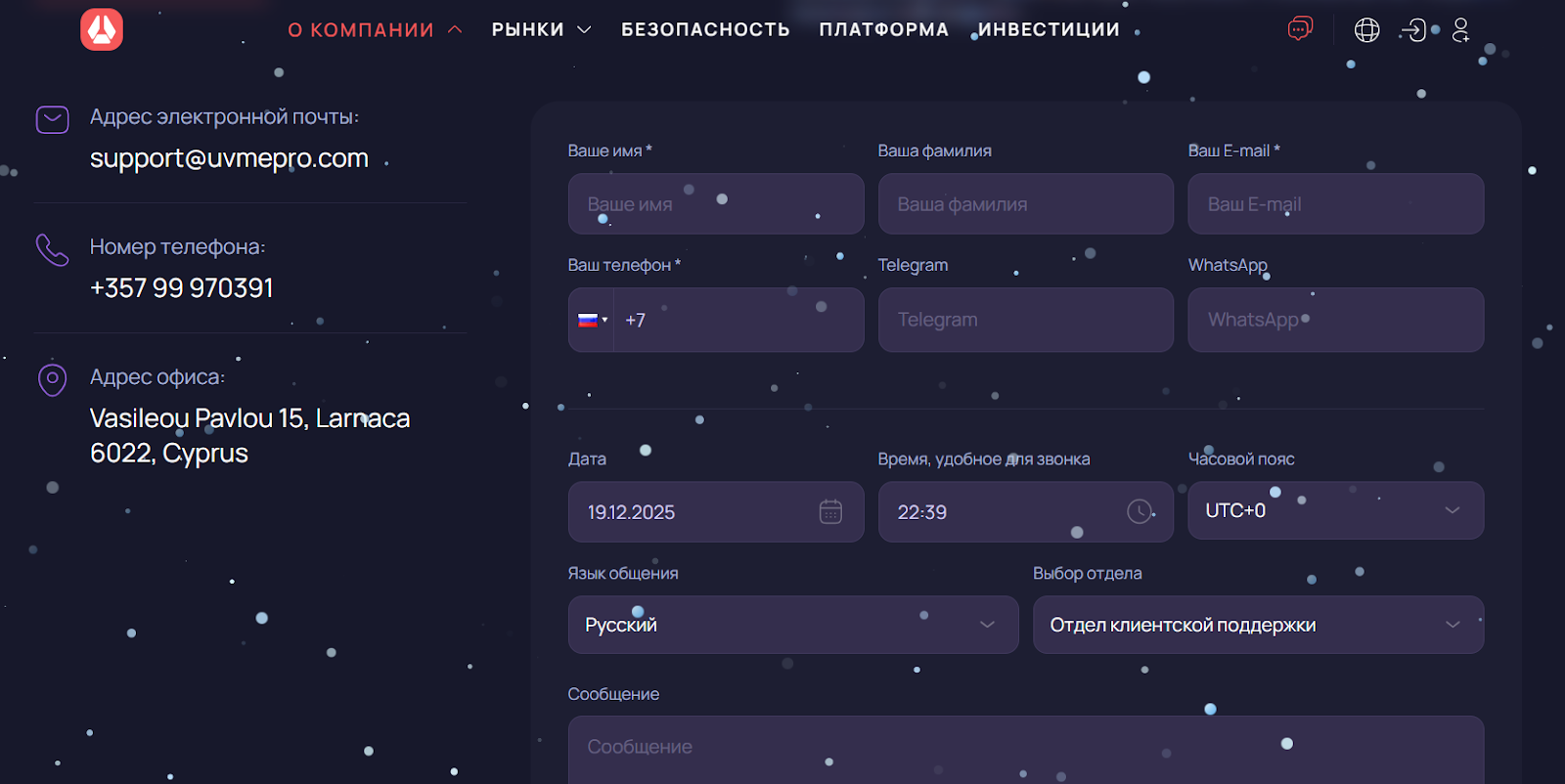 Uvmepro отзывы имеет негативные, хотя преподносится эта брокерская компания, как надежное место, чтобы торговать на популярных рынках. На сайте акцентируется внимание на высокой надежности и современном подходе к инвестициям с использованием всех необходимых инструментов аналитики. Далее проанализируем этот сервис детальнее и исследуем реальные возможности для клиентов, а также проверим отзывы о платформе на форумах.