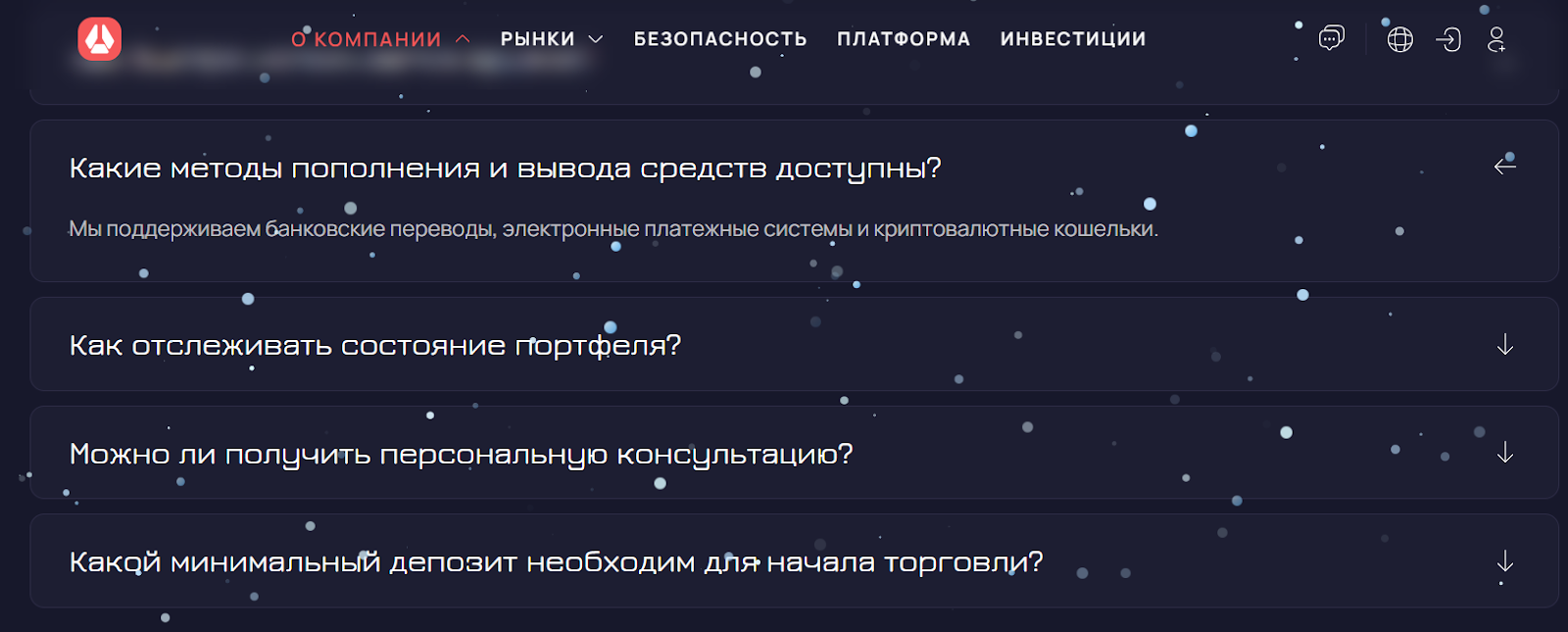 Такие важные моменты, как пополнение баланса и вывод средств из Uv Mpo Info кратко оговариваются лишь в FAQ на сайте брокера. Там говорится, что сервис поддерживает банковские переводы, системы электронных платежей и криптовалютные транзакции.