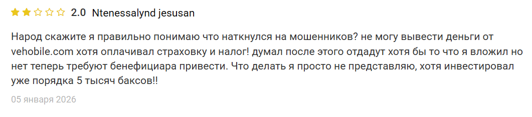 • отрицательные отзывы о Vehobile.