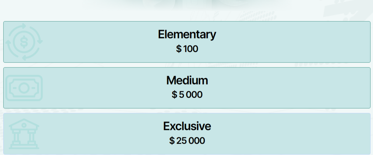 3. Эксклюзив. Для клиентов, которые могут позволить внести не менее 25 тысяч долларов предлагается индивидуальное обслуживание. К стандартным услугам добавляется личный менеджер, круглосуточная поддержка, более выгодные условия.
