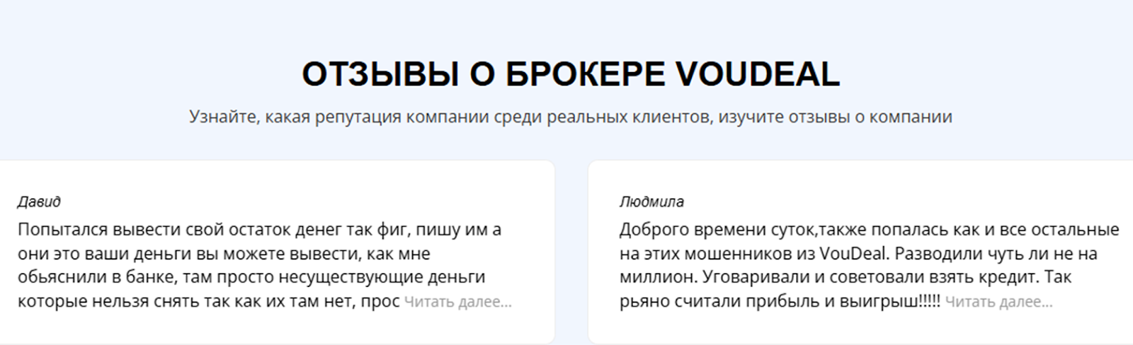 Негативные отзывы на Vou deal лишь еще раз подтверждают факт нечестности брокера.