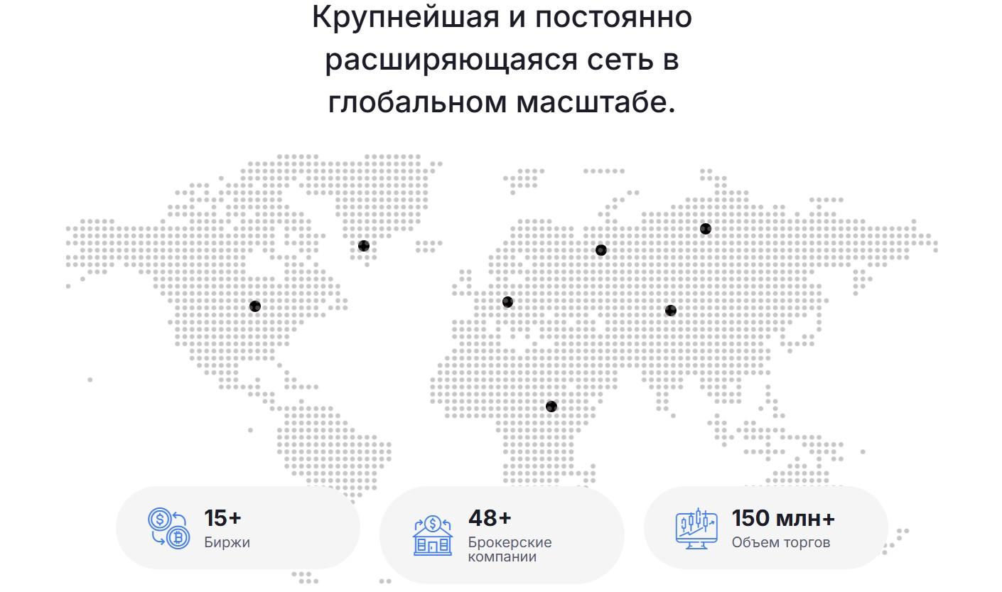 На сайте указано, что на этой площадке торгуют люди со всего мира. Плюс она охватывает свыше 48 брокерских организаций и более 15 бирж для трейдеров. Это сомнительно, так как в сети об этой компании мало информации. В профессиональных трейдерских кругах о ней не знают.
