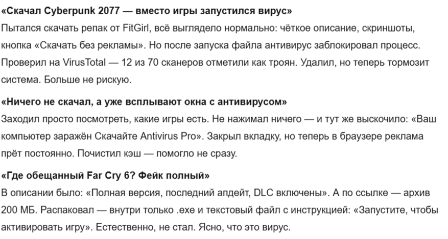 - риск загрузить вирус;