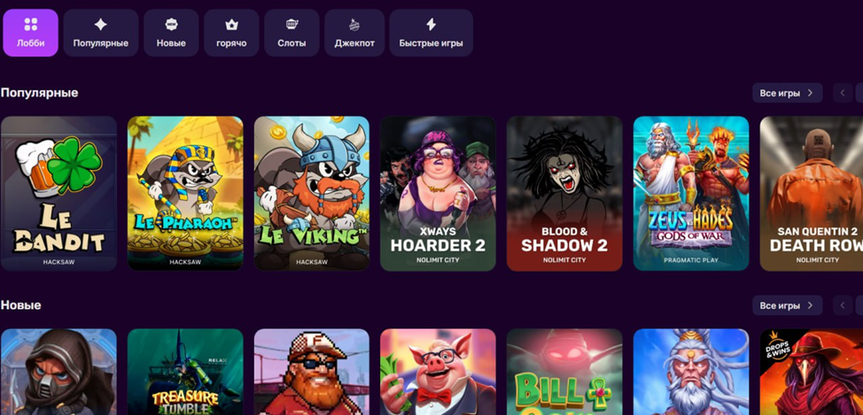 На сайте Xmelgame пользователям предоставляется возможность внимательно ознакомиться со всеми развлечениями. Они подразделяются на категории: популярные, новые, слоты и прочие. Также есть вкладки с джекпотами и быстрыми играми. Подробная информация появляется после нажатия на конкретный раздел.