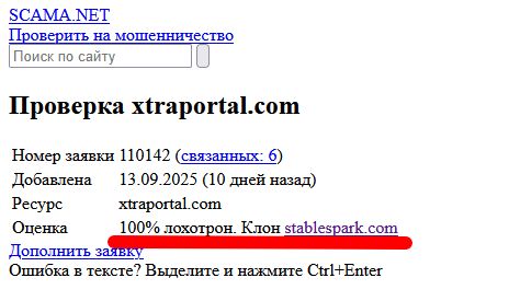 Помимо прочего, найден клон stablespark.com по данным сайта SCAMA.NET.
