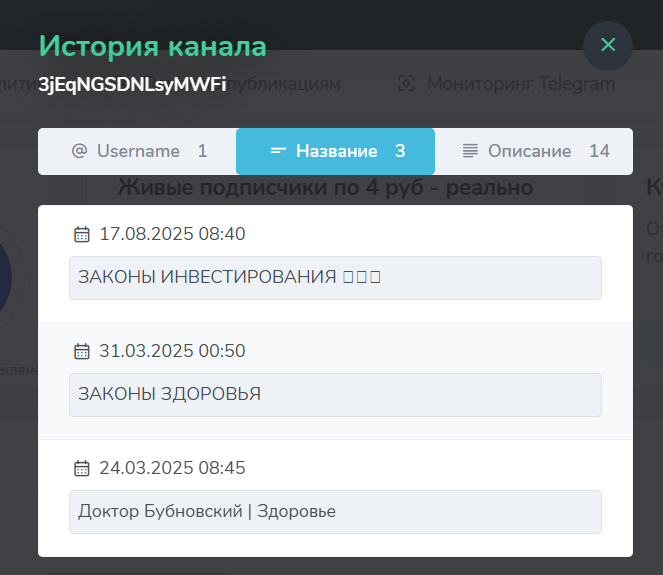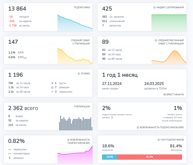 Проект запустили 27.11.2024, причем изначально канал принадлежал доктору Бубновскому, который рассказывал о гимнастике и предлагал лекции о здоровье, а в середине 2025 года деятельность резко сменилась на торговлю криптовалютами, что выглядит странно.Подписчиков почти 14 000, но статистика имеет признаки накрутки, так как всего 2% пользователей просматривают посты, вовлеченность составляет 0.82%, а значительная часть аудитории в январе 2026 года вообще уходит.