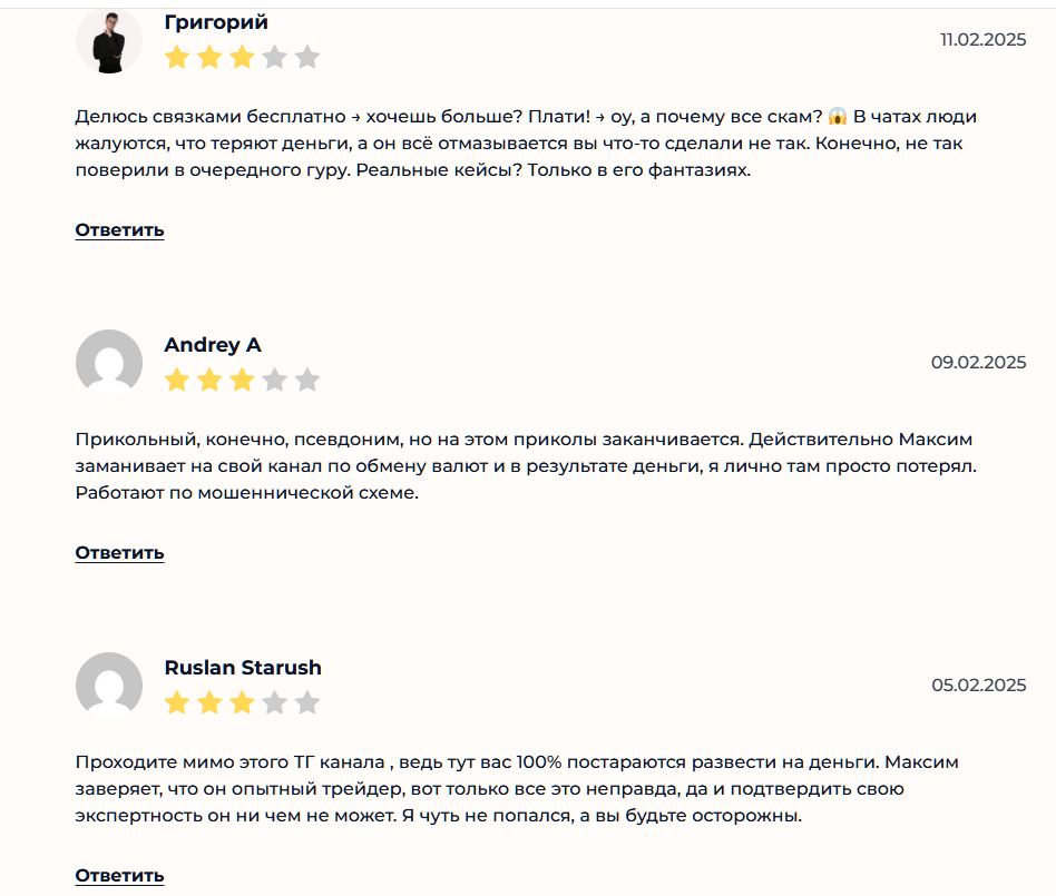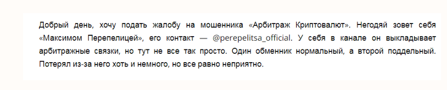 - Репутация у трейдера «Максим Перепелица» в сети очень плохая, найдено много сообщений, что пользователей перенаправляли на скам обменники.