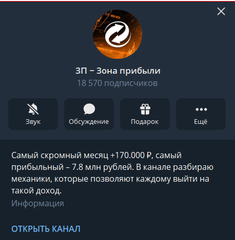 Выводы про ТГ канал «ЗП Зона прибыли»