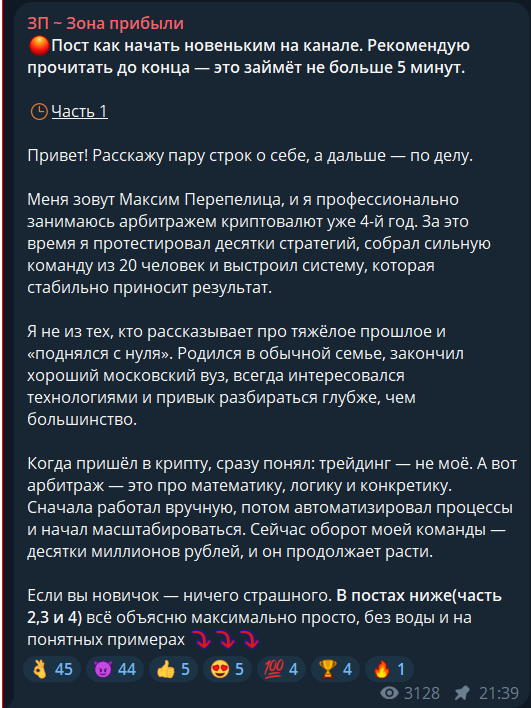 Какие про ТГ канал «ЗП Зона прибыли» и трейдера Максим Перепелица отзывы
