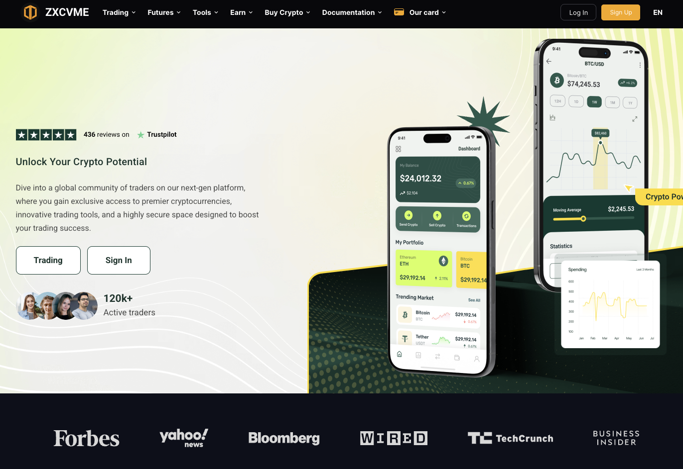 «Зхквме ком» — это сайт, который ее создатели преподносят как популярную криптовалютную биржу. В шапке данного ресурса заявлено, что на Trustpilot площадка заслужила более 430 отзывов, а еще ее упоминают крупные издания по типу Forbes и Bloomberg.