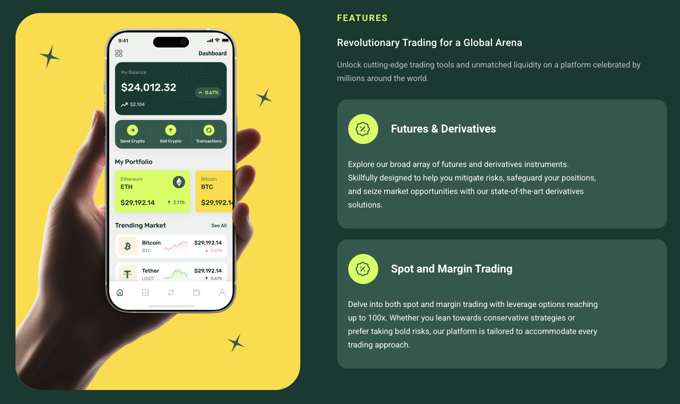 Среди заявленных функций криптобиржи присутствуют следующие:
