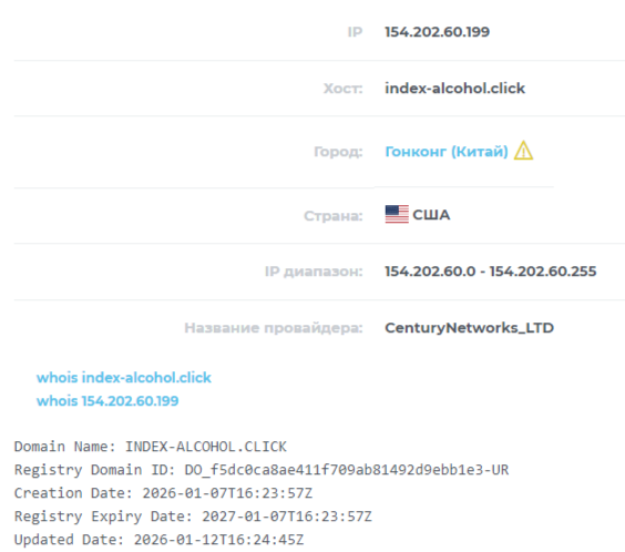В характеристиках домена указывается, что запустился он в США 7 января 2026 года со сроком работы – 1 год. Это небольшой период, который показывает несерьезные планы создателей и то, что площадка работает всего 6 дней.