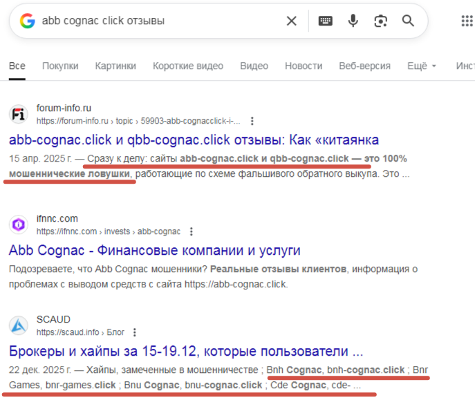 Отзывов о проекте https abb cognac click в сети нет, а значит в его ловушку никто не попался. Если бы организация реально представляла возможность безопасно зарабатывать в интернете, ее авторы вели бы прозрачную деятельность, предоставляли конкретику о своих услугах и имели юридическое оформление.