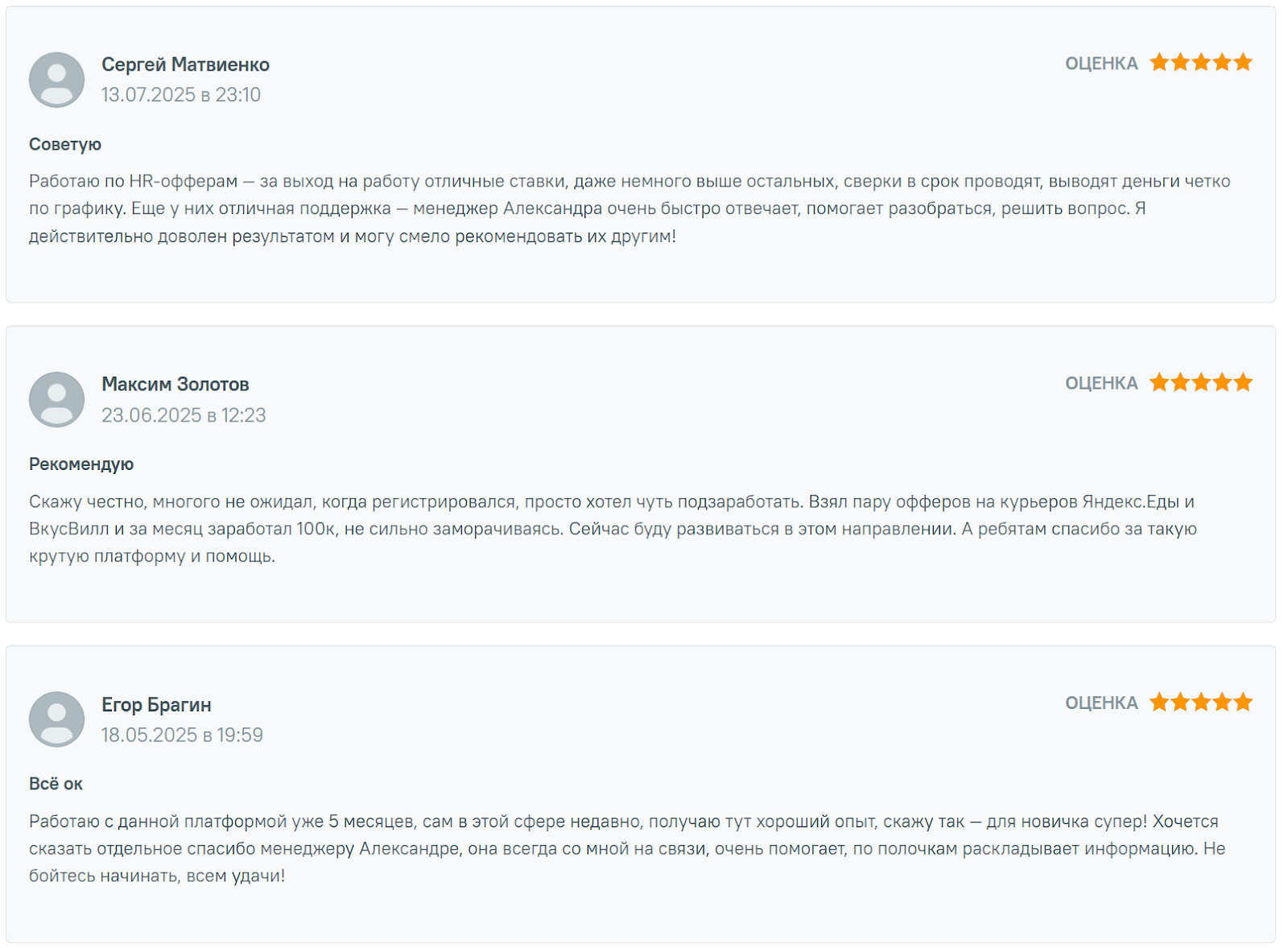 На сторонних сайтах представители Aff также хвалятся плюсами работы платформы. В публикациях клиенты отмечают получение полезного опыта и возможность быстрого заработка.