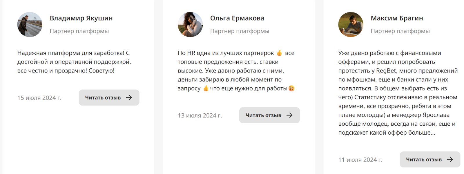 На официальном сайте можно найти множество отзывов о aff ru. Здесь клиенты хвалят возможности и надежность платформы. Они заявляют, что это одна из лучших партнерок на текущем этапе.