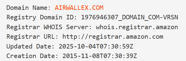 Сайт Airwallex Exchange создан в 2015 году, но в 2025 информация в реестре адресов обновилась. Не исключено, что мошенники приобрели старый домен и используют его, чтобы добавить солидности своей деятельности.