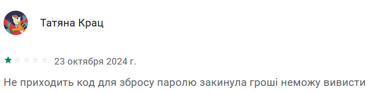 Второй пользователь пишет, что ему не приходит код для смены пароля, из-за этого он не может вывести деньги.