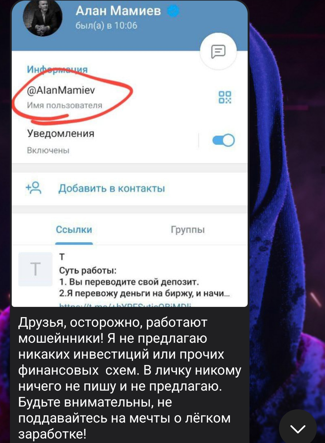 • В сети регулярно появляются страницы, использующие бренд AlanMamiev, а значит подписчики могут потерять деньги, если не проверят источник.