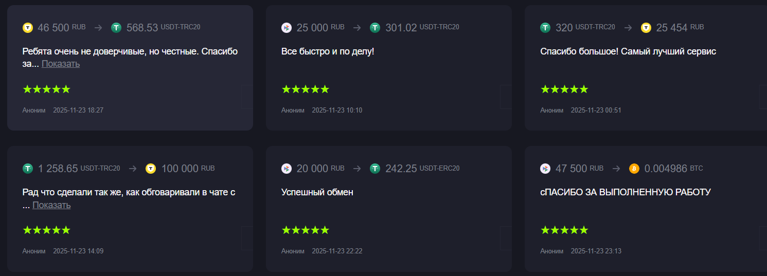 На сайте alfabez net опубликованы отзывы якобы от реальных клиентов. Все они дают высокую оценку обменнику: благодарят за услугу, отмечают оперативность, выгодный курс и качество работы техподдержки. Обменник Алфабез называют лучшим. Но авторы этих комментариев все анонимны: нет ни имени, ни фотографии, ни ссылки на профиль в соцсети. Часто владельцы сайтов публикуют фейковые отзывы для создания видимости высокой популярности и хорошей репутации.