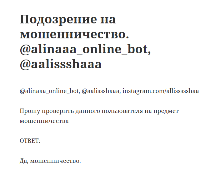 При этом Alinaaa Online bot получает негативные отзывы на независимых площадках. Люди жалуются на оплату без документов, отсутствие обещанного наставничества и устаревшие уроки, которые легко найти бесплатно в открытом доступе. Отдельные пользователи указывают, что вернуть деньги не удается, а заявления о доходе завышенные. В публичных чатах зафиксированы сообщения с обвинением в мошенничестве, что создает дополнительный риск для потенциального покупателя.