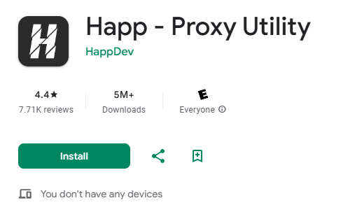 Приложение Happ есть в Google Play. Загрузок больше 5 миллионов и рейтинг 4.4. Разработчик – компания HappDev. В боте присутствует раздел помощи. Там базовые инструкции по подключению. Техподдержка работает через Телеграм.