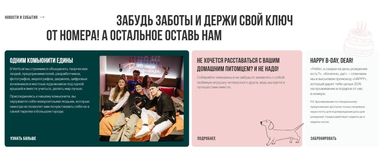 Апарт-отель Vertical активно привлекает инвесторов. Предлагается вложить средства в покупку номеров и получать доход от оплаты проживания постояльцев. Благодаря премиальному обслуживанию поток гостей всегда большой и стабильный, что гарантирует постоянный и высокий доход. Для инвесторов создан отдельный сайт – vertical invest ru.