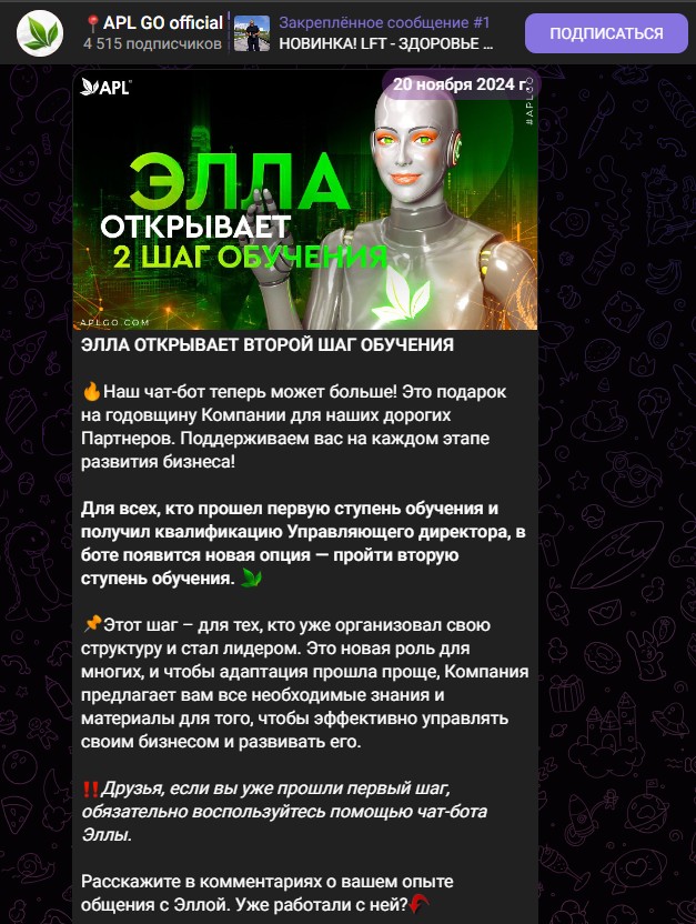 - публичный канал в Тг имеет признаки накрутки, а значит, обман не исключен и в самом сотрудничестве с «Эпл Го».