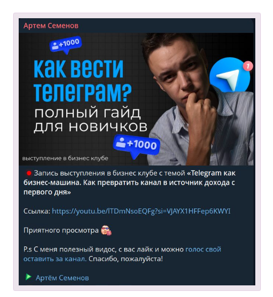 В самом канале он публикует стоимость просмотров в разных тематиках, разбирает выбор формата ведения и стратегию роста. Прямые призывы купить курс встречаются нечасто, подача спокойная и учебная.Социальные сети Artem Semenov