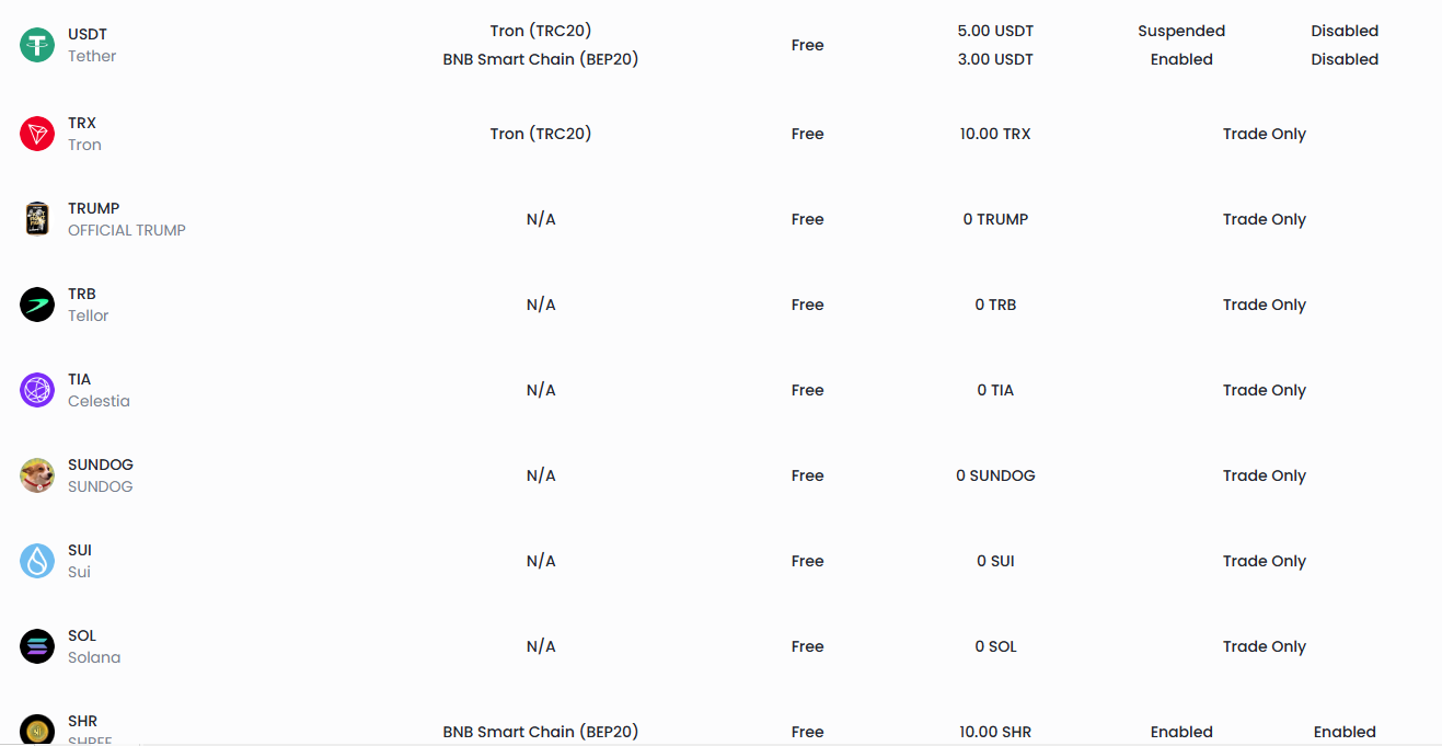 Для вывода крипты установлены минимумы: USDT от 5 монет, Tron от 10 TRX. За вывод USDT берут 3 токена по сети BEP20, 5 токенов по TRC20. Биржа удерживает налог TDS – 1% при продаже крипты. Деньги уходят государству автоматически.