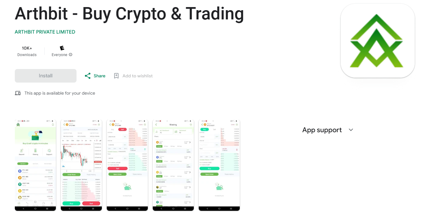 Приложение Arthbit Buy Crypto Trading в Google Play установили более 10 тысяч раз. За четыре года работы это катастрофически мало. Обычные биржи за такой срок набирают сотни тысяч пользователей.