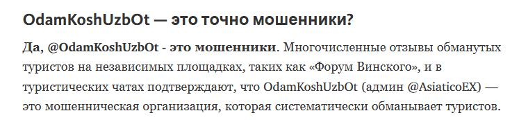 - На OdamKoshuzBot отсутствовала юридическая информация и лицензия. Получается, в случае спора получить защиту было затруднительно.