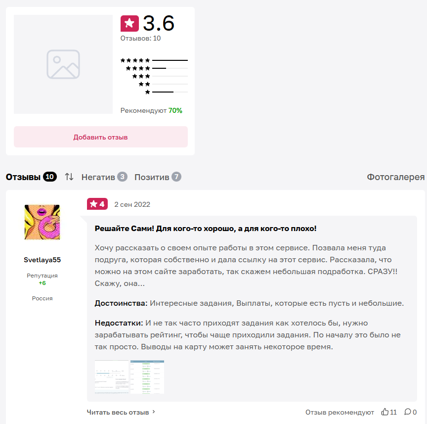 - отзывы с жалобами на малое число заданий и скромную оплату за них.